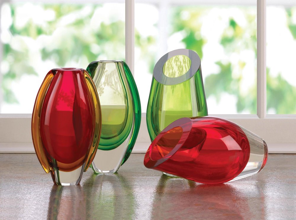 • Dramatic design featuring an angled top and beautiful shades of red make this glass vase a stunning addition to your decor. Individually hand-crafted for its unique beauty and therefore may be slightly different from the picture shown here.