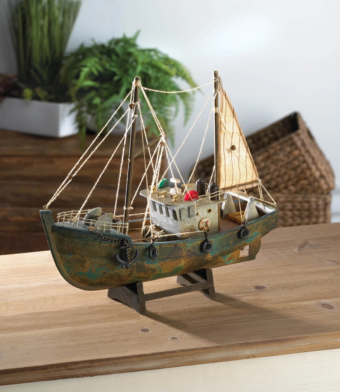 • This accurate recreation of a typical cutter from an ancient fishing boat will add a coastal touch to your home or office. The equipment on board includes the necessary shrimp sieves and cookers for immediate preparation of the catch. Replicates the real vessel down to the smallest details.