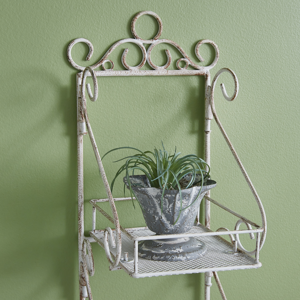 Designed to enhance the elegance of your space, this finely crafted shelf is the perfect blend of form and function. Its sleek design offers a sophisticated storage solution for your essentials while adding a touch of charm to your decor. This item is crafted from metal. To hang, use its two screw-hole hangers.
