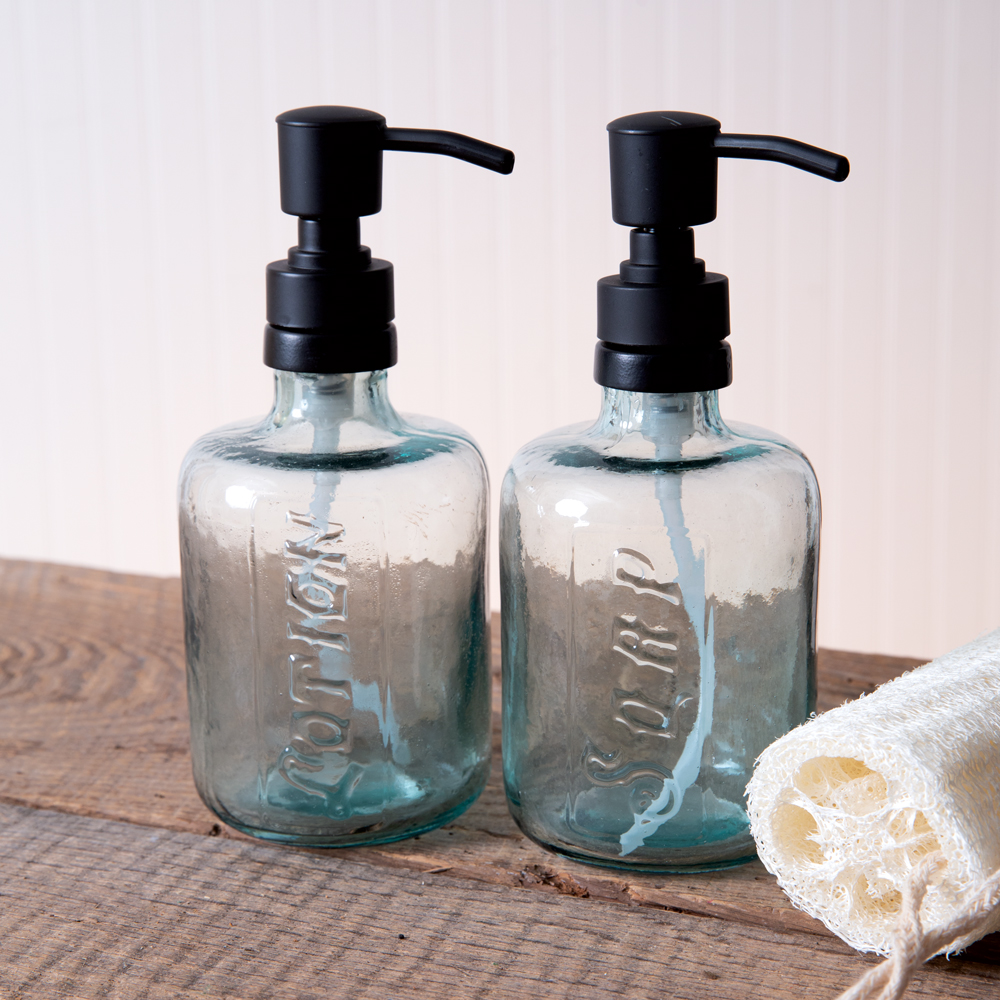 Our vintage style lotion dispenser will compliment your bath and kitchen decor in almost any style. It features durable glass and an embossed lotion motif. Pumper is finished in matte black. Dispenser holds 14 oz of liquid.
