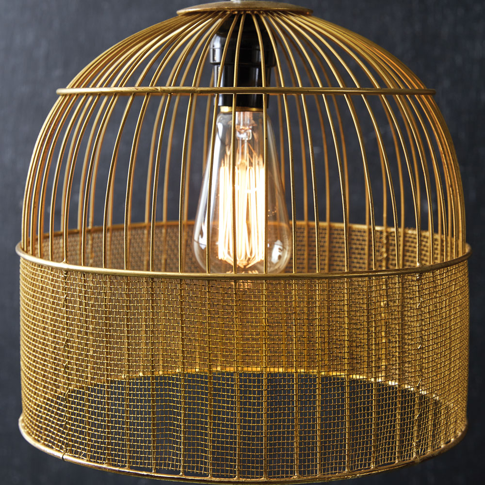 Giving your space a whole new look is simple as installing a new light fixture. This pendant resembles an antique bird cage with gold accents on its metal features. Canopy and wire included. Requires a standard light bulb, not included. 60-watts is the maximum suggested bulb wattage for this item. Item must be hardwired.
