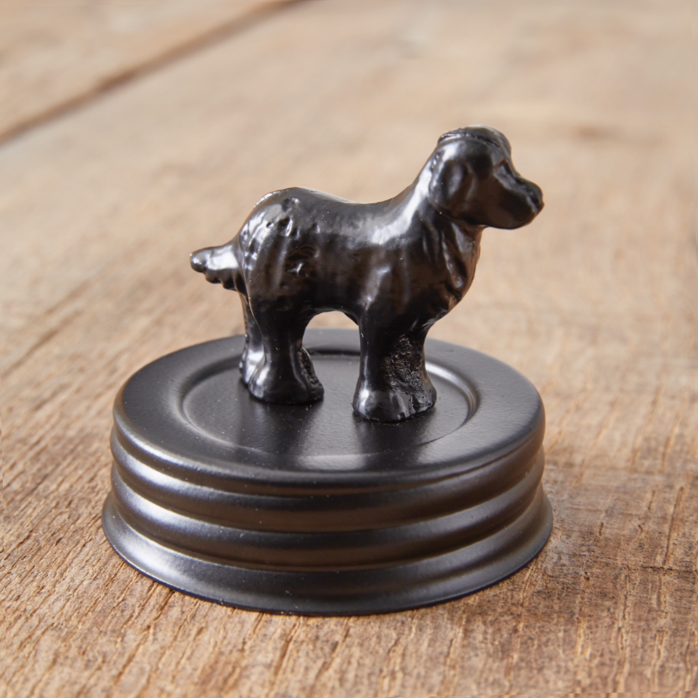 We can't help but spoil our pups with lots of treats! Store them for freshness inside our farmhouse staple mason jar. The jar is created of glass and features embossed lettering with the phrase ''Dog Treats'' on the front. The metal lid features a golden retriever on top.